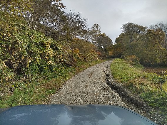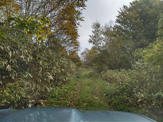 3.5km地点、伐採現場を過ぎると轍が薄くなります